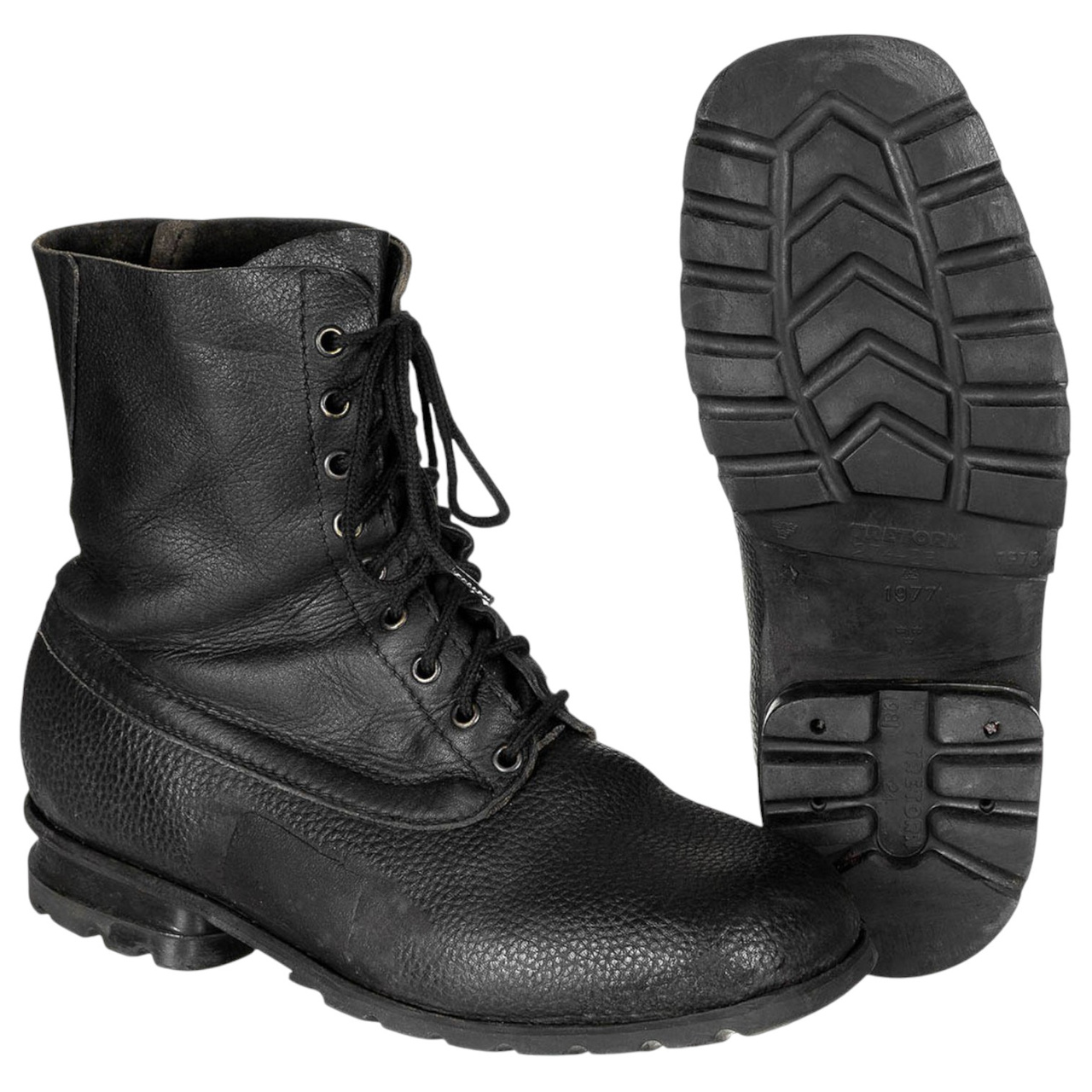 LEATHER BOOTS - TRETORN - SWEDISH ARMY MILITARY SURPLUS - BLACK - USED