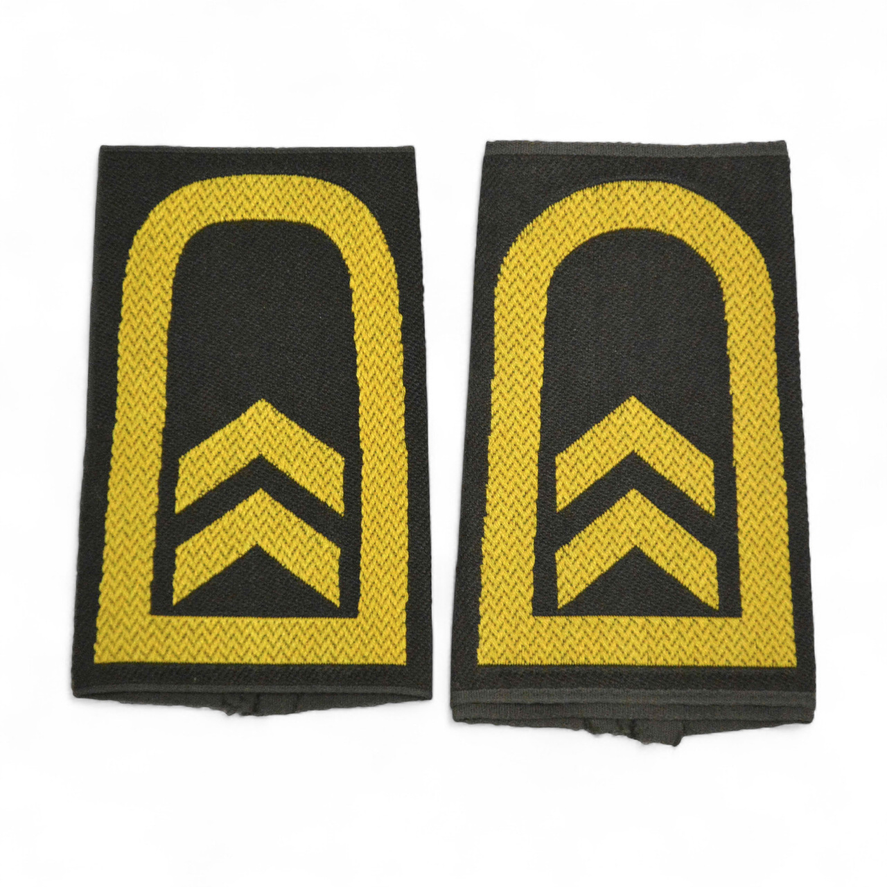 Pair of German Army (Navy) ranks for field clothing, olive green, woven, slightly trapezoidal, embroidered with arial thread.