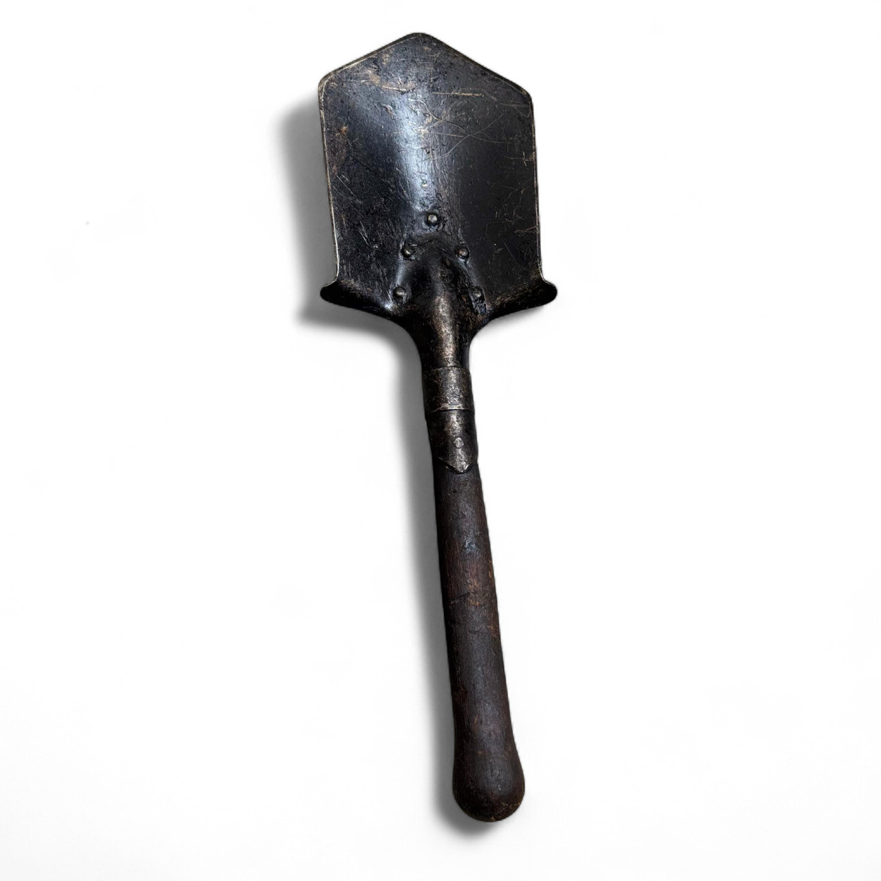 This original trench shovel was used during both World War I and World War II and follows the classic German model. It was an essential tool carried by soldiers on the front lines, used for digging trenches as well as in combat situations.