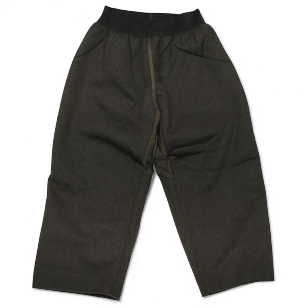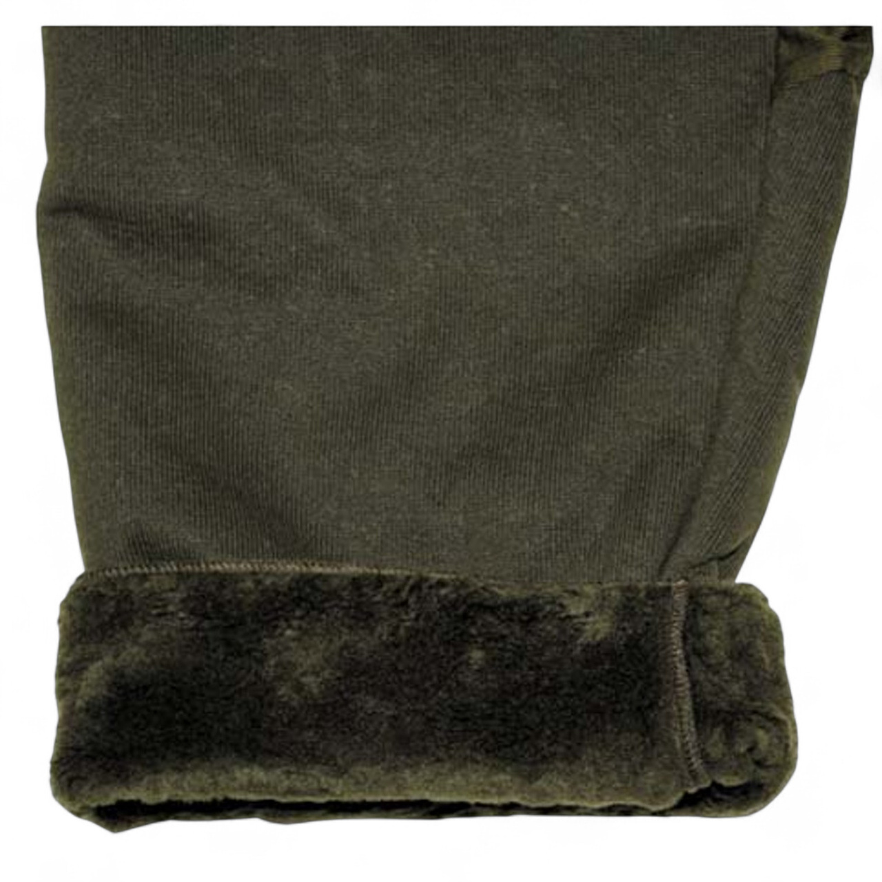 These jersey-style pants, lined with soft teddy-like fabric, are made in an Olive green hue. They were originally worn as an extra thermal layer on very cold days. Today, they can be worn with chunky boots, making them a practical and stylish choice for cold days.