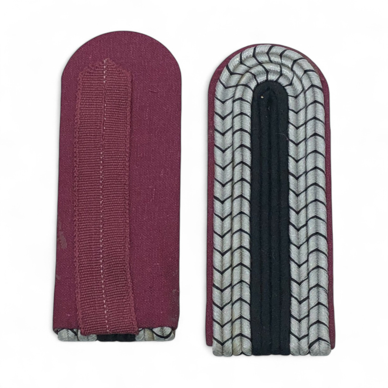 A vintage pair of military ranks from the surplus of the former East German Army (GDR), used in military firefighting structures under the Ministry of the Interior or in the Volksmarine (People’s Navy), part of the Nationale Volksarmee (NVA).