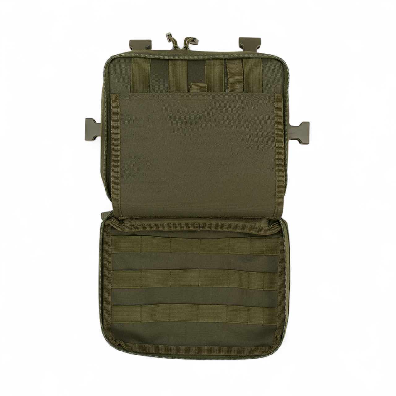 Oversized admin pouch style chest bag ideal for work, recreation or sports. Made of rugged 600DEN polyester 600DEN material, it offers efficient organization and comfortable wear thanks to lightweight shoulder straps with mesh inserts and 4 quick-release buckles.