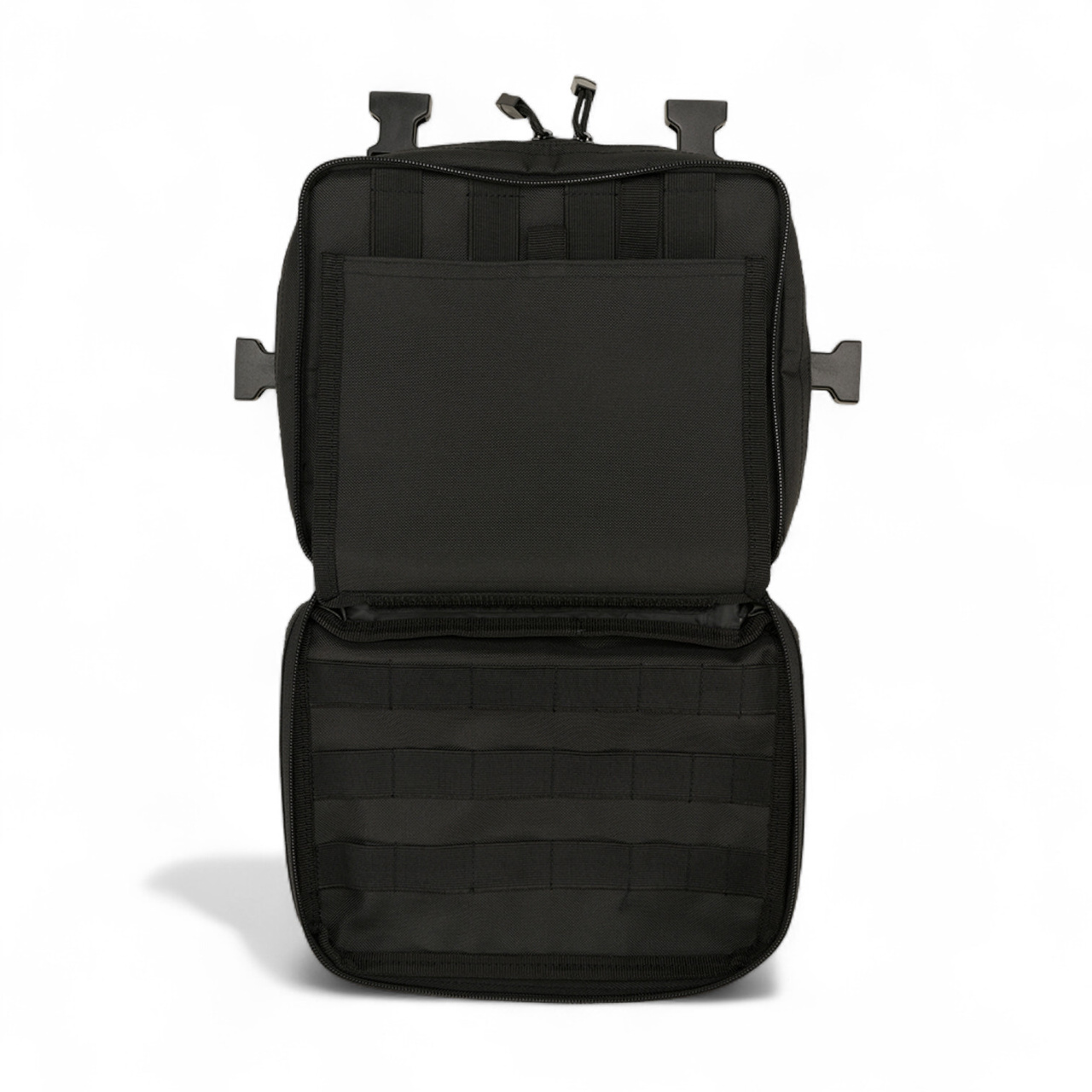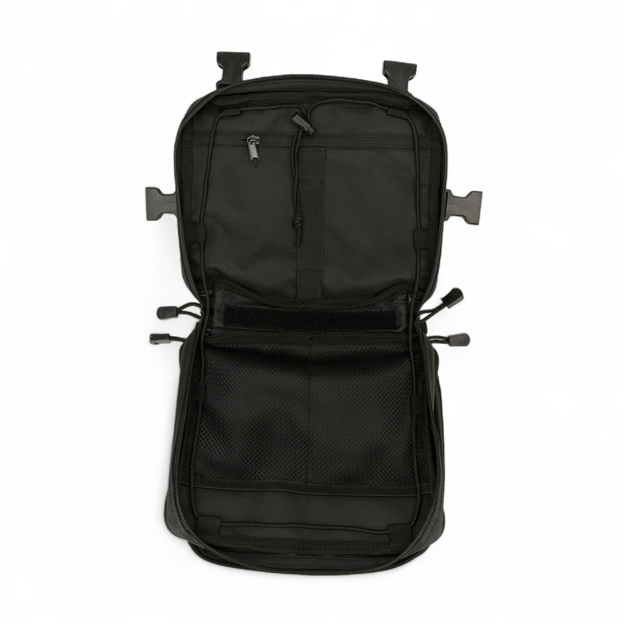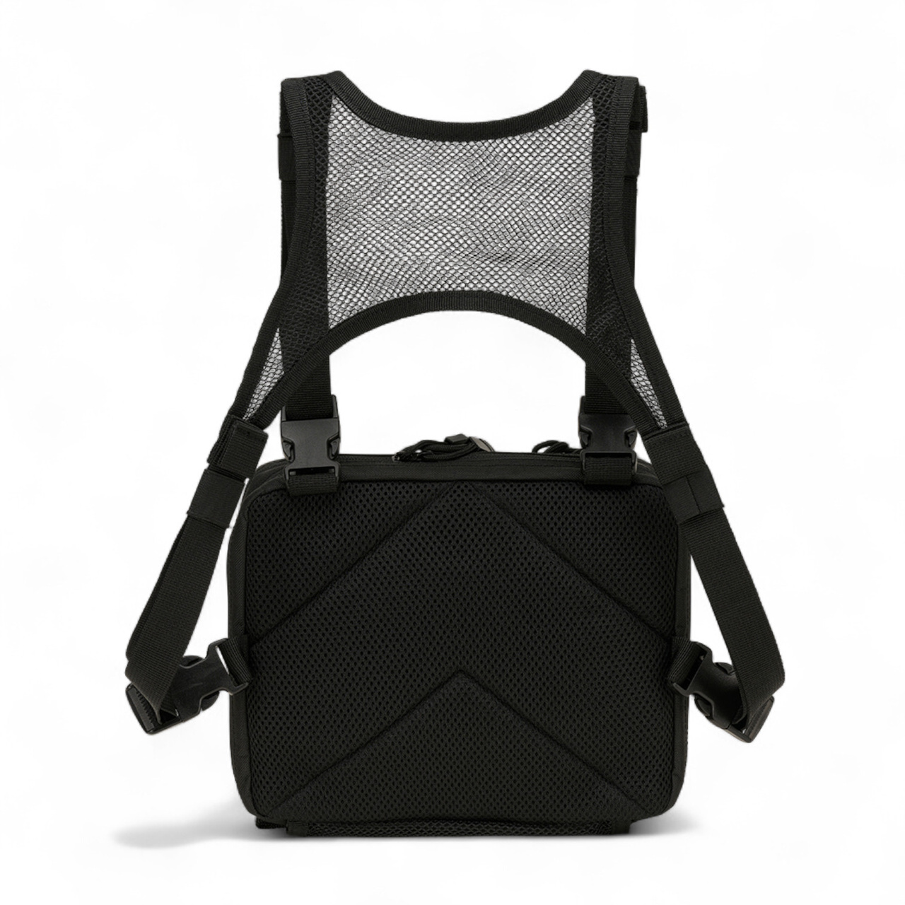 Oversized admin pouch style chest bag ideal for work, recreation or sports. Made of rugged 600DEN polyester 600DEN material, it offers efficient organization and comfortable wear thanks to lightweight shoulder straps with mesh inserts and 4 quick-release buckles.