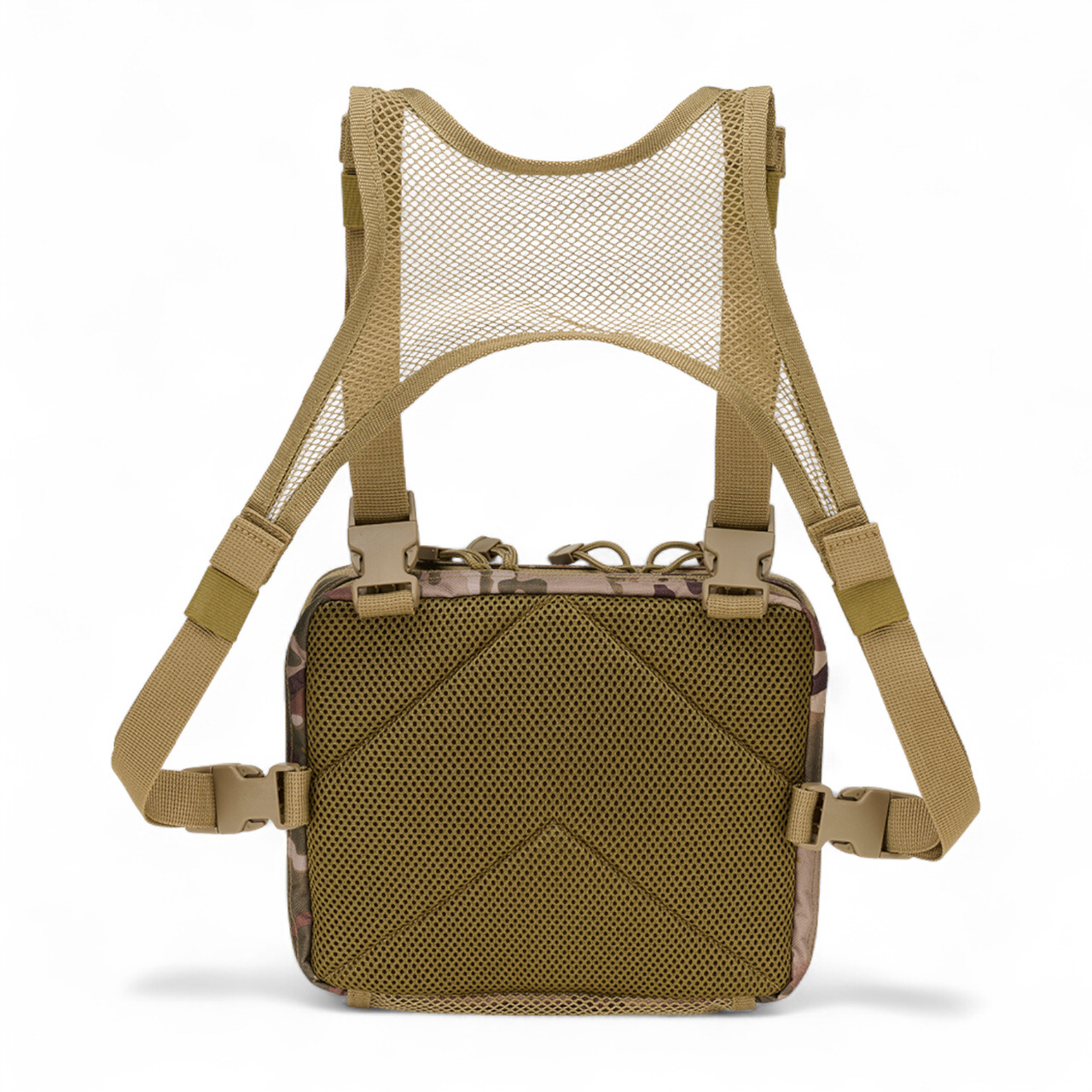 Oversized admin pouch style chest bag ideal for work, recreation or sports. Made of rugged 600DEN polyester 600DEN material, it offers efficient organization and comfortable wear thanks to lightweight shoulder straps with mesh inserts and 4 quick-release buckles.