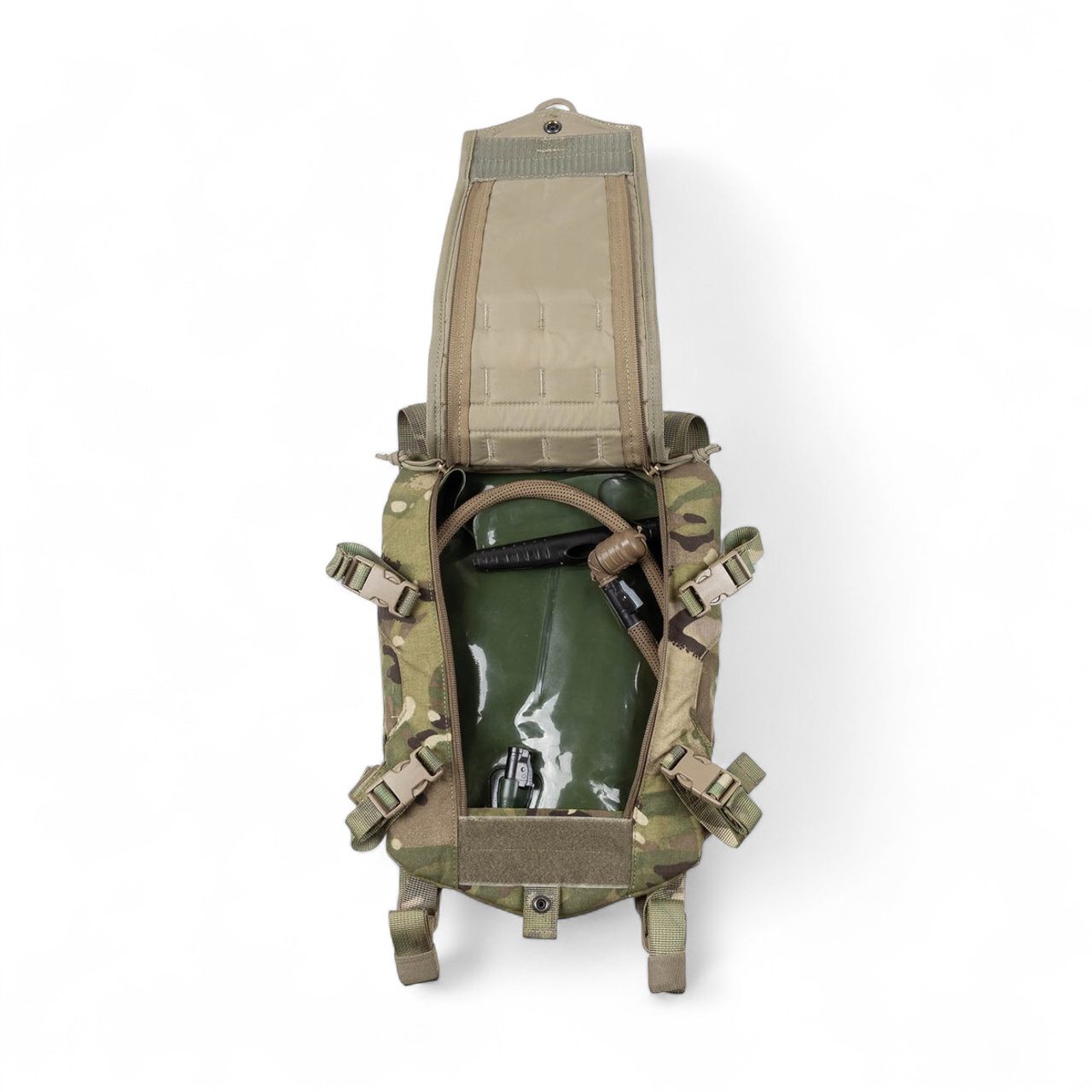 This next-generation hydration pack, originally issued by the British Army (NSN 8465-31-016-0993), is designed for practical and versatile use in the field. Part of the “soldier as a system” concept developed by SOURCE, it is compatible with most tactical vests and plate carriers using four quick-release side buckles.