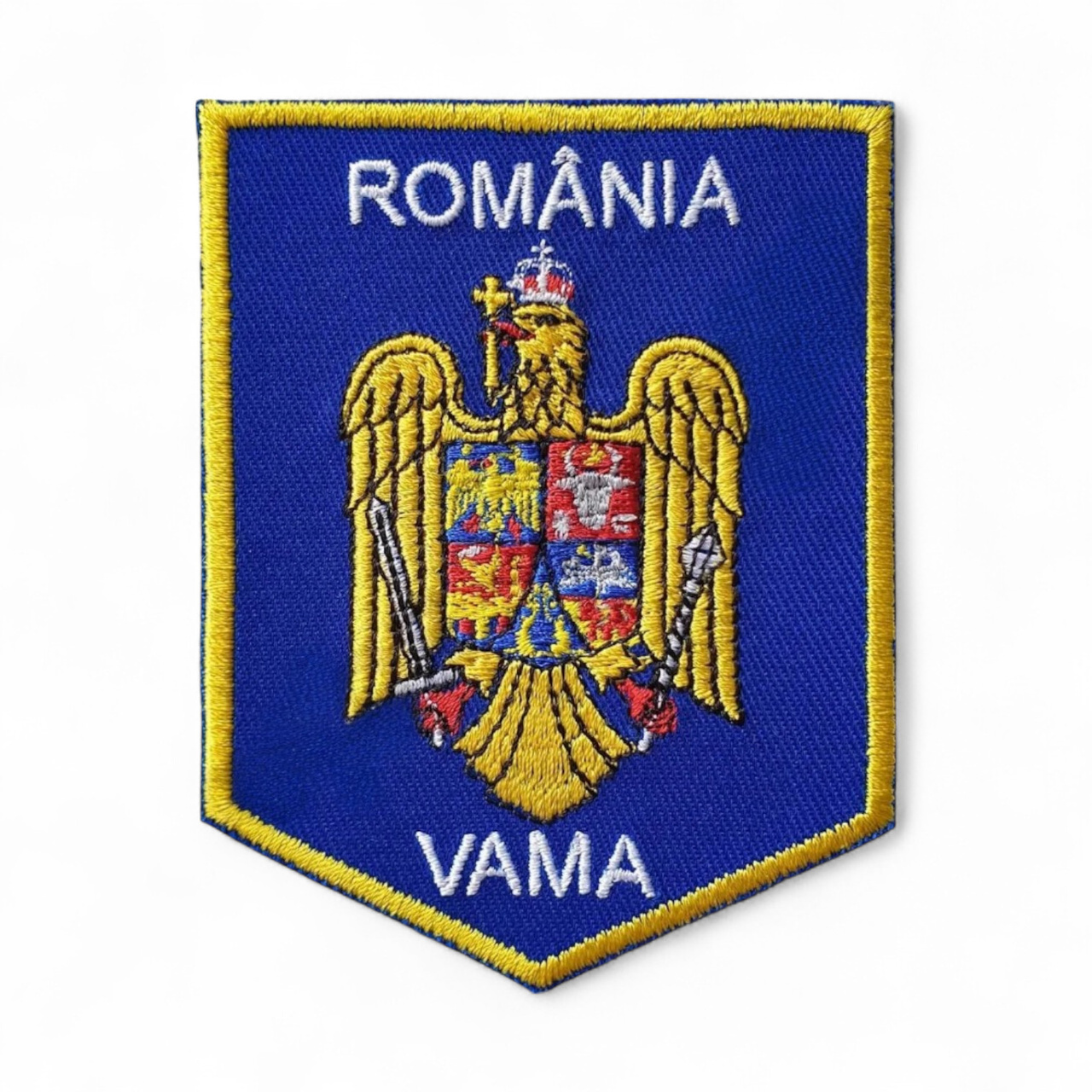 Emblema scut Vama brodata se poarta pe maneca uniformei personalului vamal.