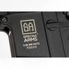 The replica’s receiver, free-float type front, SF-type retractable stock with battery compartment, and pistol grip are made of nylon fiber-reinforced polymer. The barrel, flash hider, enlarged charging handle, and external controls are made from aluminum alloy and ZnAl. All screws, pins, the ejection port cover, and the mock bolt are made of steel. The barrel is marked with a unique serial number.