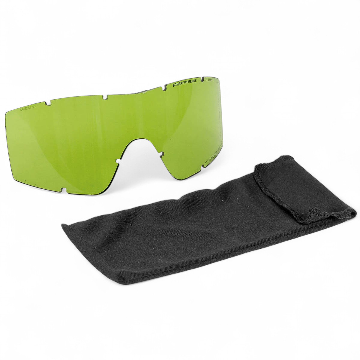 Replacement lens for REVISION Desert Locust tactical protective goggles, sourced from military surplus. In excellent, near-new condition. Green laser-protection model (Laser Lens E2-5 4-0440-9460), designed to shield eyes from direct laser beams.