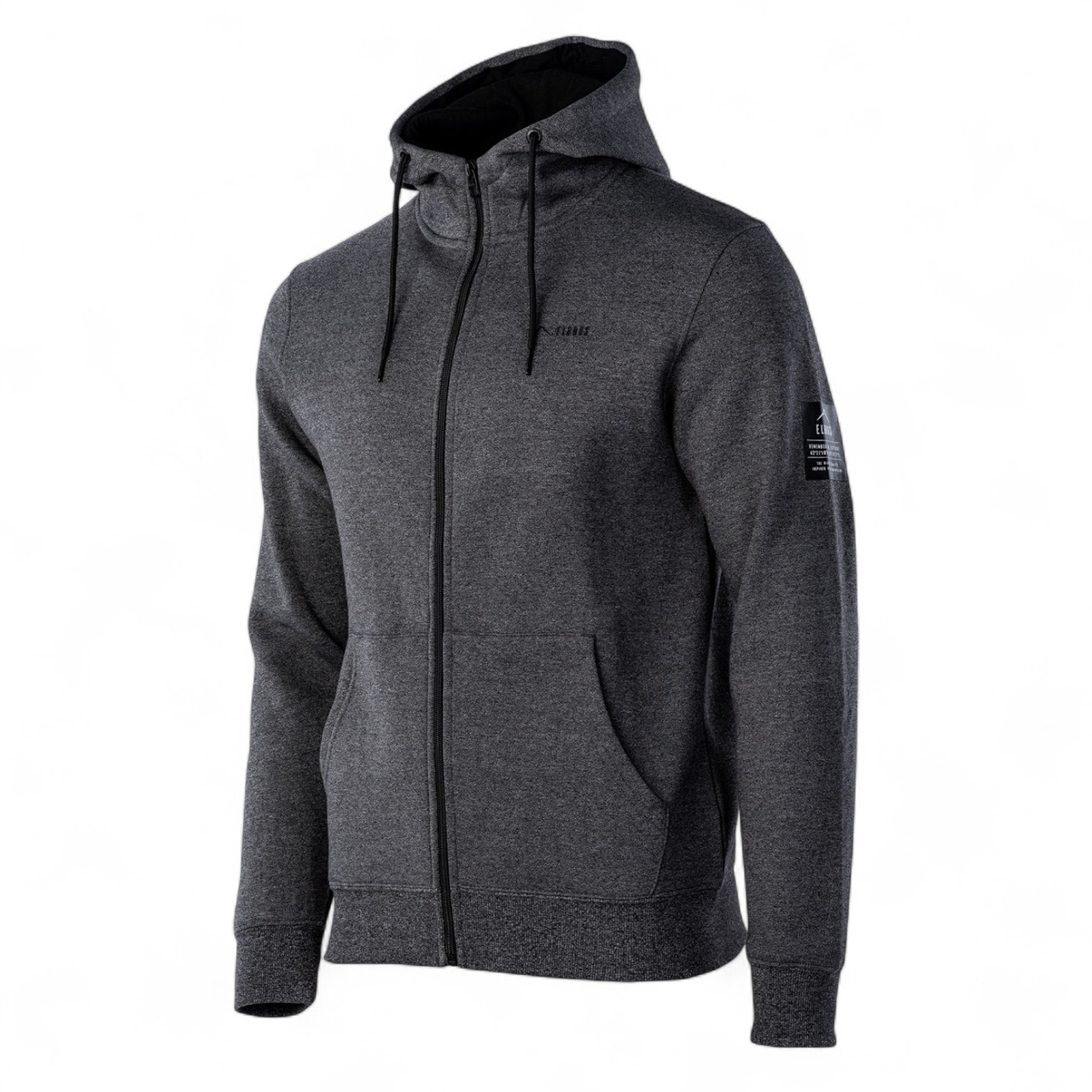 The ELBRUS CHIANO men's hoodie is the ideal choice for comfort and style in the cold season. Made from soft, pleasant-to-touch fabric with a 320g fleece interior, the hoodie provides warmth without compromising freedom of movement. The adjustable drawstring hood and practical front pockets add functionality, and the simple, dark gray design easily matches any casual or sporty outfit.