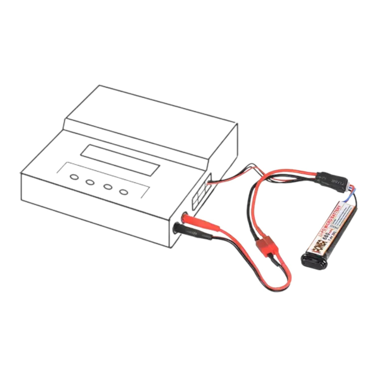Thanks to this adapter, the battery can be connected to professional chargers.