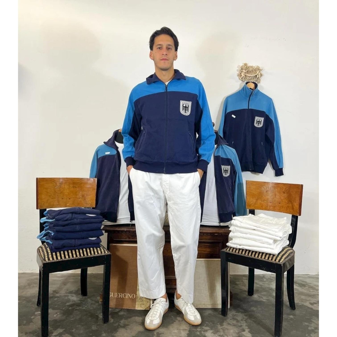 This vintage track jacket comes from the German Armed Forces (Bundeswehr) military surplus, PT model from the 1980s. It is an iconic track top, blue with an embroidered white Bundeswehr badge, preserving the classic military design — comfortable and practical. Perfect for collectors, vintage enthusiasts, or casual daily wear.