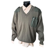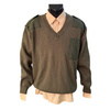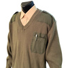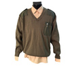 • V-Neck Sweater with Epaulettes - Romanian Army Military Surplus - OD Green - In Good Condition