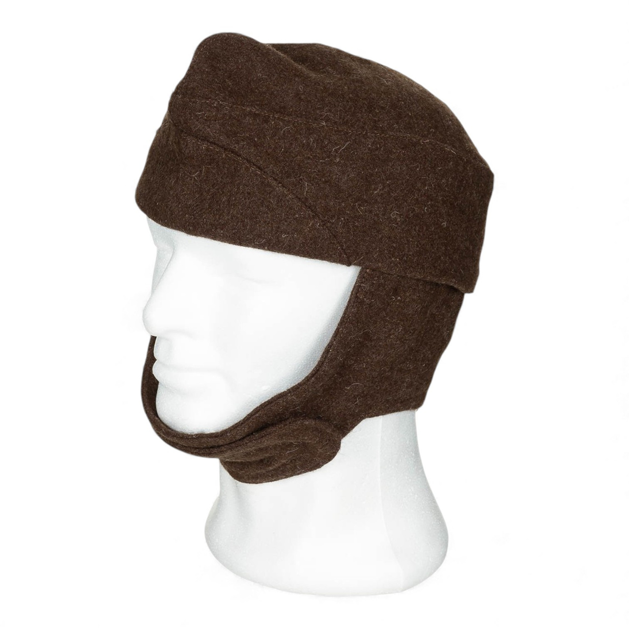 Side Wool Cap with Ear Flaps - Cold War Era - Military Surplus, Army of the People s Republic of Bulgaria - Brown - Like New