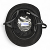 It has a hat-style brim and is lightweight, allowing for comfortable wear. Equipped with a chin strap with Velcro, adjustable via a metal buckle.
