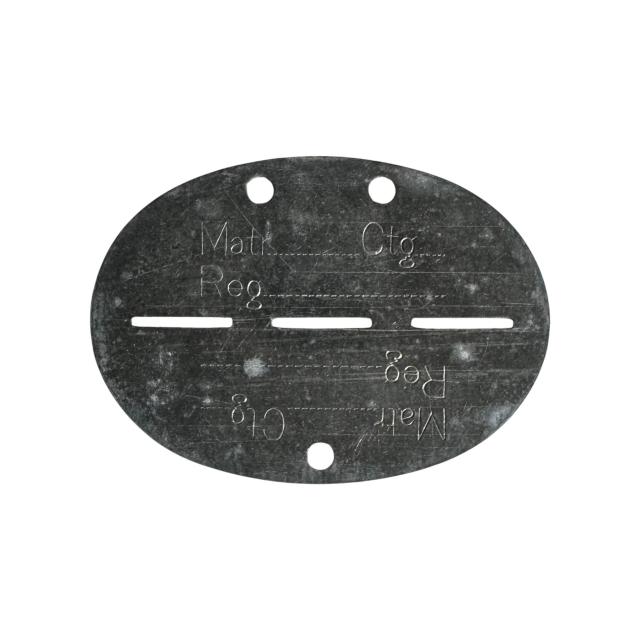 The dog tags are in good vintage condition. They are not personalized with a name.