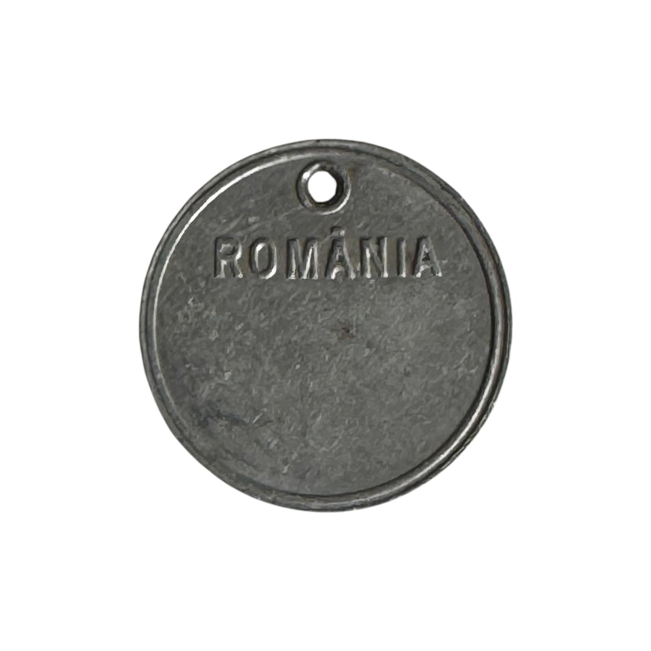 This round silver-colored metal pendant comes from the surplus of the Romanian Army and bears the ROMANIA inscription. Its coin-like shape and attachment hole make it a practical and decorative accessory with multiple uses. Possible uses include an unofficial identification element that can be worn on backpacks, equipment, keychains, or attached to various accessories, ideal for camps, exercises, or competitions in unofficial contexts.