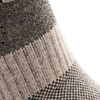 The entire sole surface is made with an internal terry (towel-type) weave, which distributes pressure evenly across the foot. The textured thermal zones in the trekking socks absorb most of the moisture, and through the existing ventilation channels, it is wicked upward and expelled through the upper part of the footwear. Additionally, they pair perfectly with boots featuring a membrane, as the moisture evacuation process is even faster.