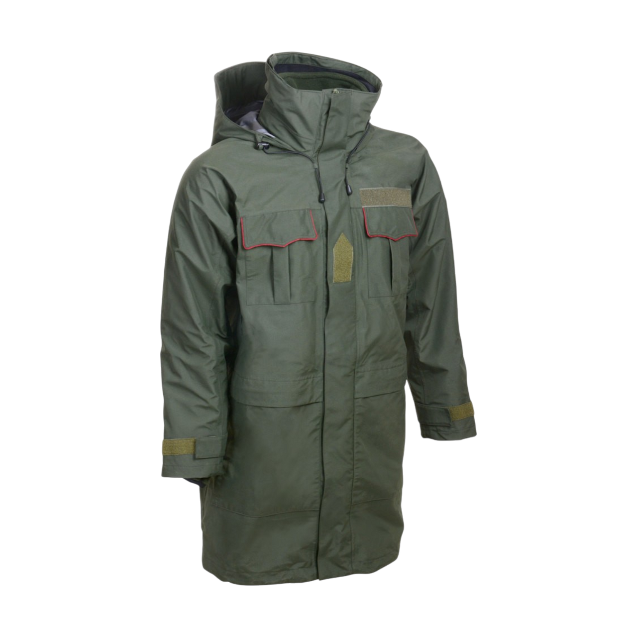 This green wet weather jacket is designed to provide effective protection against rain, wind, and low temperatures, making it ideal for outdoor activities, professional use, or everyday wear in difficult weather conditions.