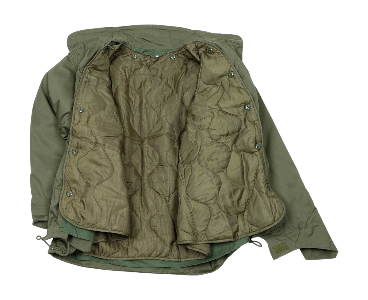 Classic US Field M65 jacket in OD green, designed for versatility and comfort in various weather conditions. It is equipped with a removable quilted lining, providing additional thermal protection when needed.