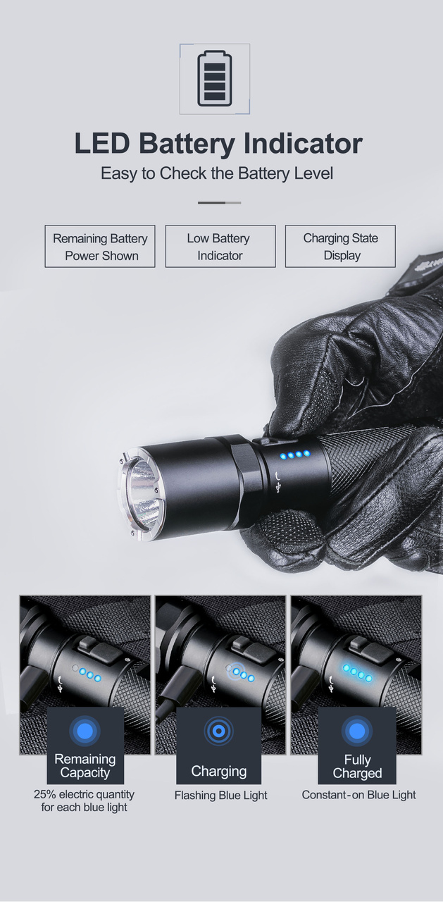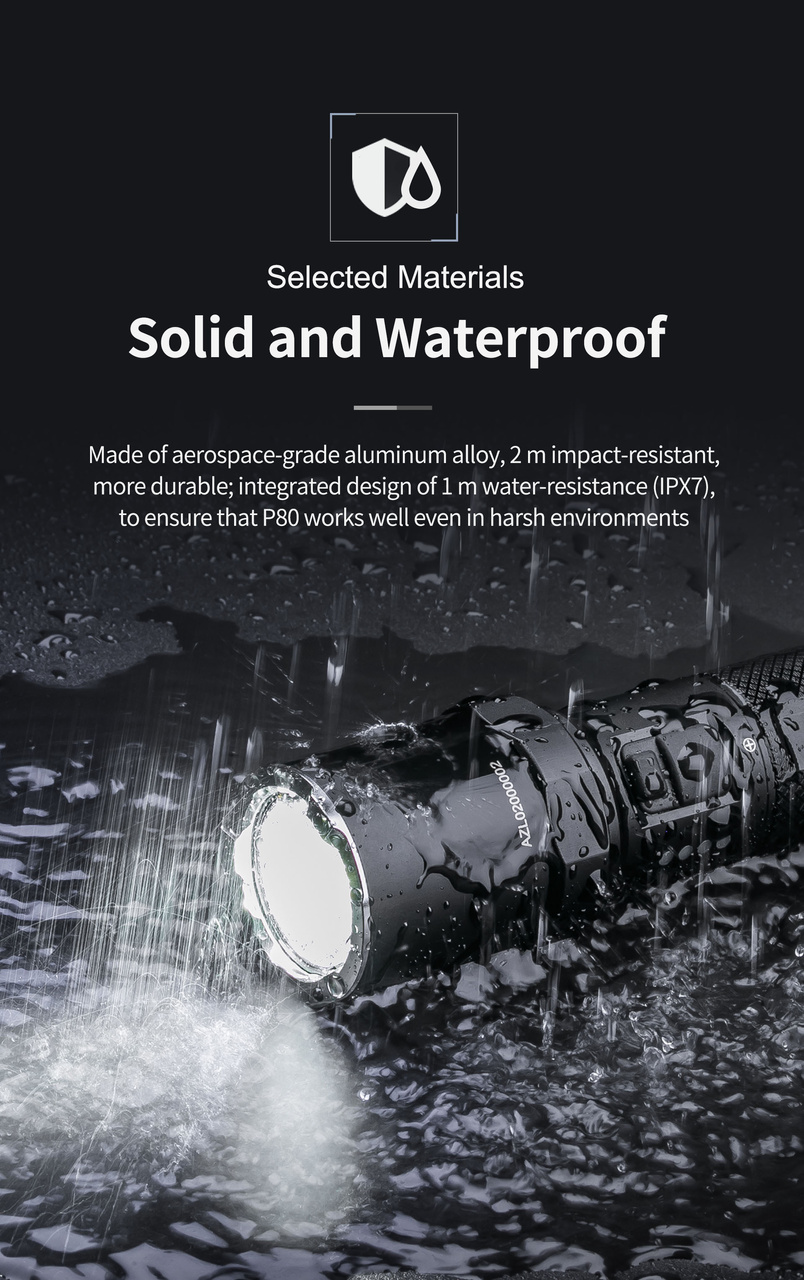 Its aerospace-grade 6061-T6 aluminum construction, combined with Type III hard anodizing, ensures outstanding durability and high wear resistance. The flashlight is impact-resistant up to 2 meters and fully protected against water, with an IPX7 rating.
