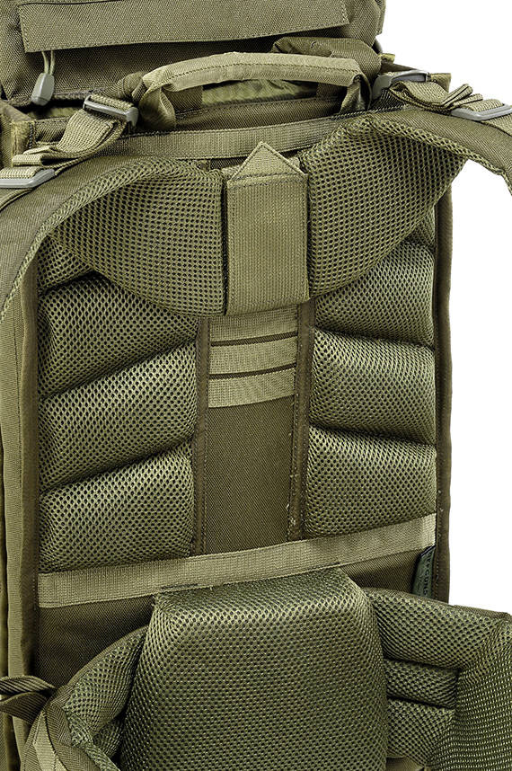 On the backpack shell there are MOLLE webbings and a carry and evacuation handle is located on its top. It features a molded padded back and shoulder straps with D-rings while lumbar support waist belt provides ample cushioning, the best comfort, protection and breathability.